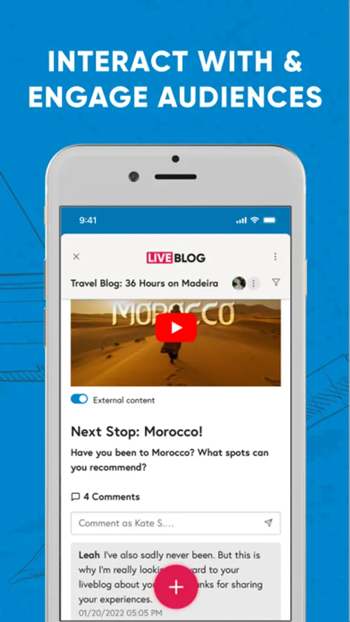 INTERACT WITH & ENGAGE AUDIENCES: With features like live-commenting blocks, simple poll and quiz integrations, and easy sharing capabilities, Live Blog makes it easy for you to interact with your readers and gain the insights your team needs to optimize your subscriptions.