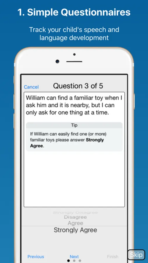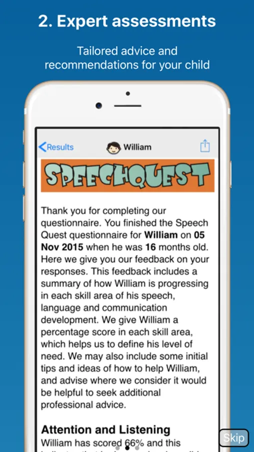 Your answers to the questionnaires will identify how your child's communication compares with other children of a similar age. Quick and easy to complete but thorough, they cover Foundation and Language Skills.