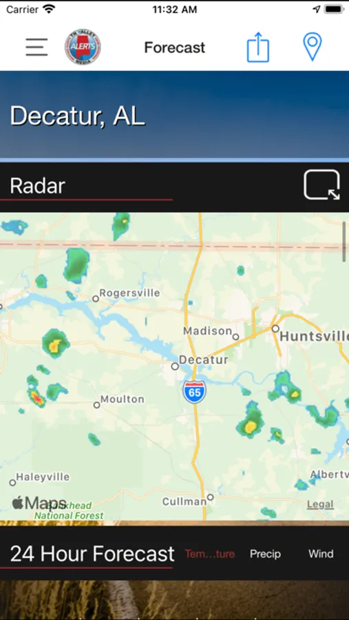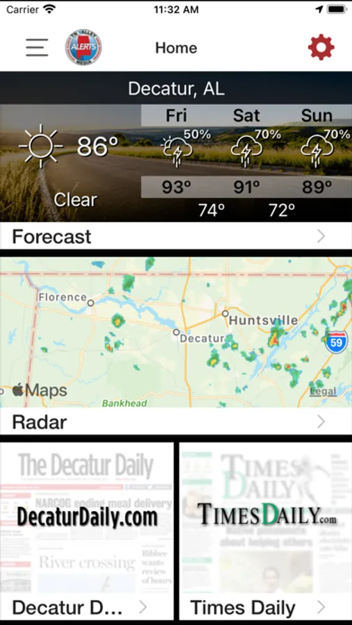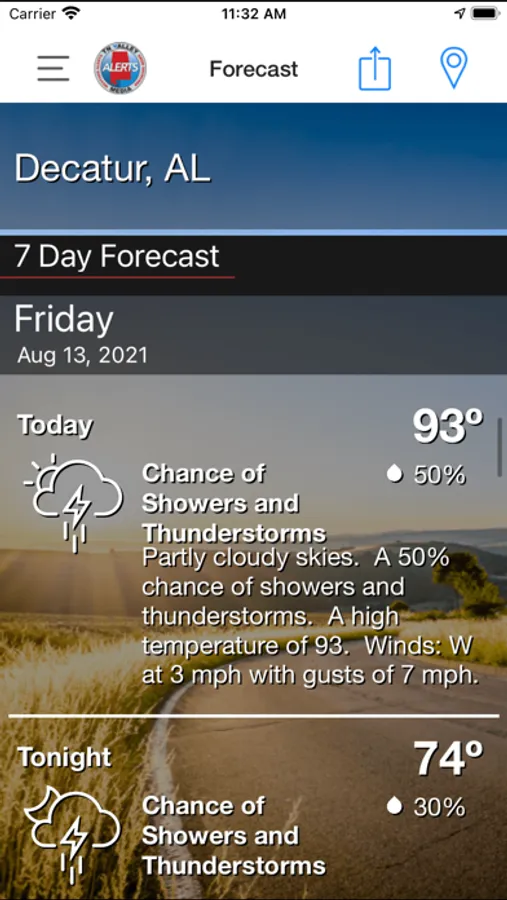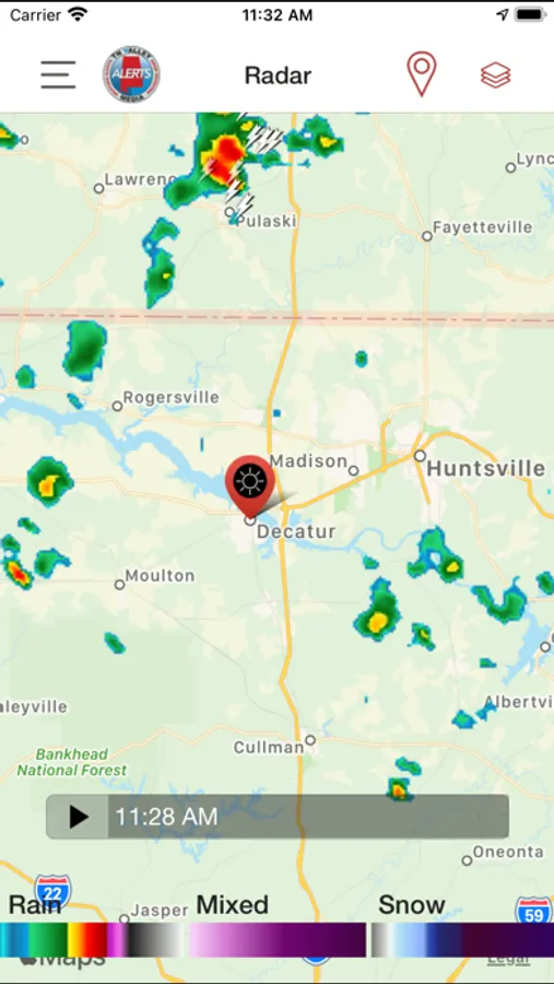 The TN Valley Alerts app is free to every resident of the Tennessee Valley area. It alerts you to imminent weather danger in your area, up to 15 minutes before the storm hits. The weather app is also good for day to day life. It features current conditions, forecasts and an easy-to-use weather map with radar, satellite imagery plus more. In addition to weather updates, the TN Valley Media Alerts app will send out breaking news messages to your phone or tablet. It will alert you on any breaking news in the Tennessee Valley area. Choose to receive any or all of these alert types: