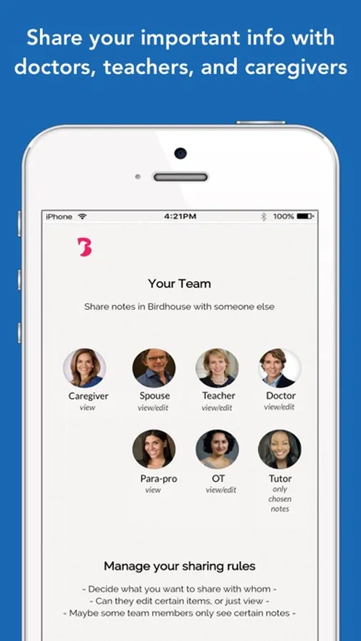 – Organize information about doctors, specialists, and other contacts, and save appointment notes & other important information