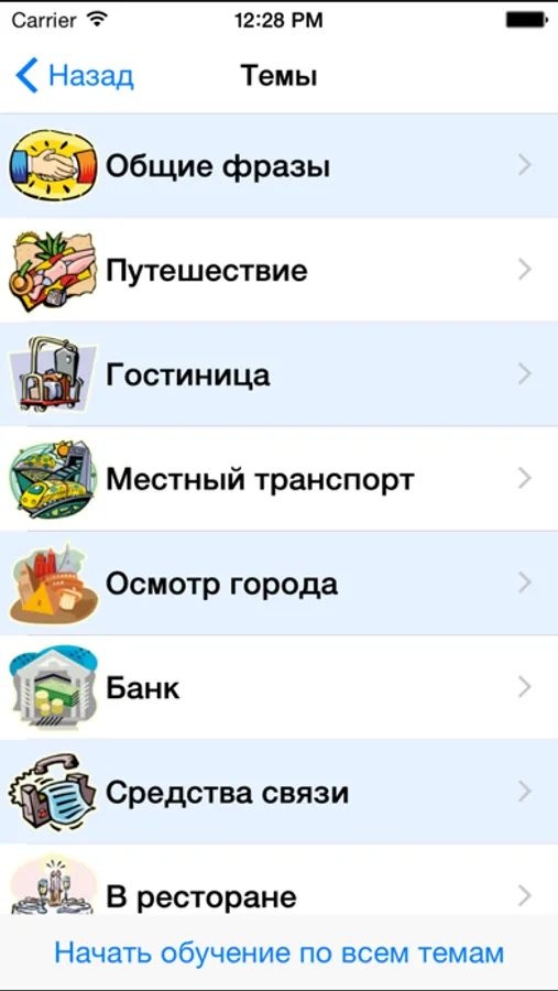 • Более 250 фраз для каждого языка совершенно бесплатно. Более 2200 слов и выражений для каждого языка в платном пакете.