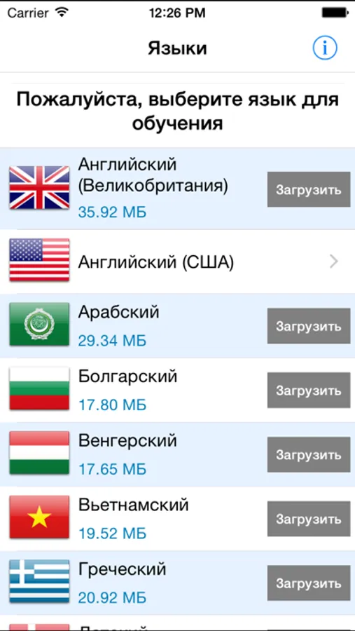 Непосредственно из приложения доступны платные версии языковых модулей с более чем 2200 слов и выражений. Покупка пакета из всех 34 языков выгодна уже в том случае, если Вам необходим более чем один иностранный язык.