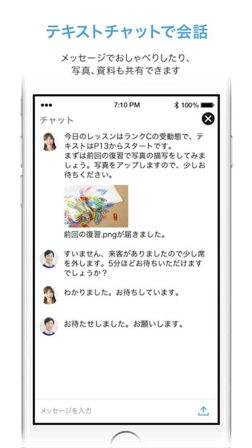 テキストチャットでコミュニケーションできる機能です。ファイル添付もできます。