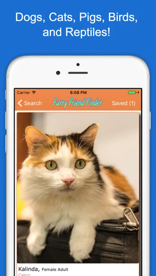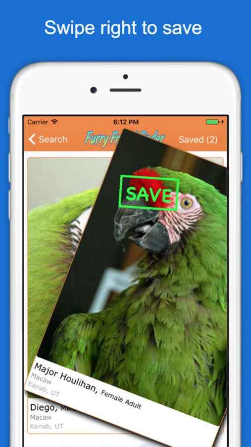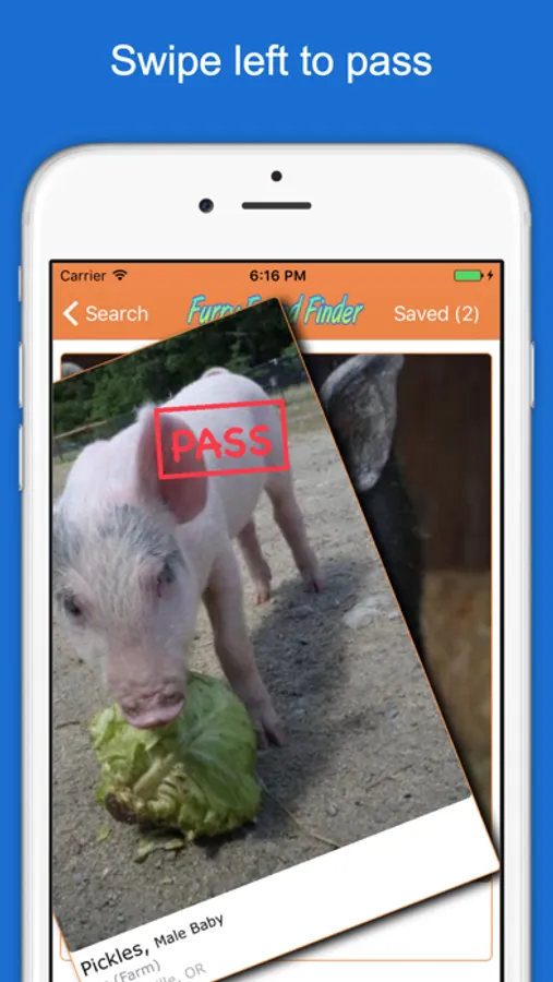 Furry Friend Finder lets you search for your perfect pet. Swipe left to pass, and swipe right to keep.