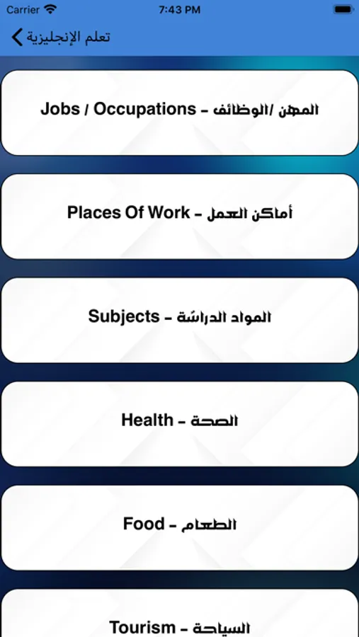 يهدف هذا التطبيق لمساعدتك في تعلم اللغة الإنجليزية التي يمكنك استخدامها في حياتك اليومية او في دراستك .حيث يركز التطبيق على قواعد اللغة الإنجليزية مع الأمثلة بالإضافة الى مجموعة كبيرة من العبارات والجمل الشائعة والمهمة التي تساعدك في بدأ الحوار مع الآخرين