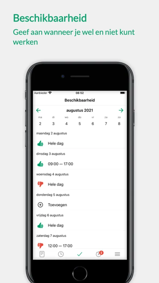 - aangeven op welke dagen zij de komende periode kunnen werken.