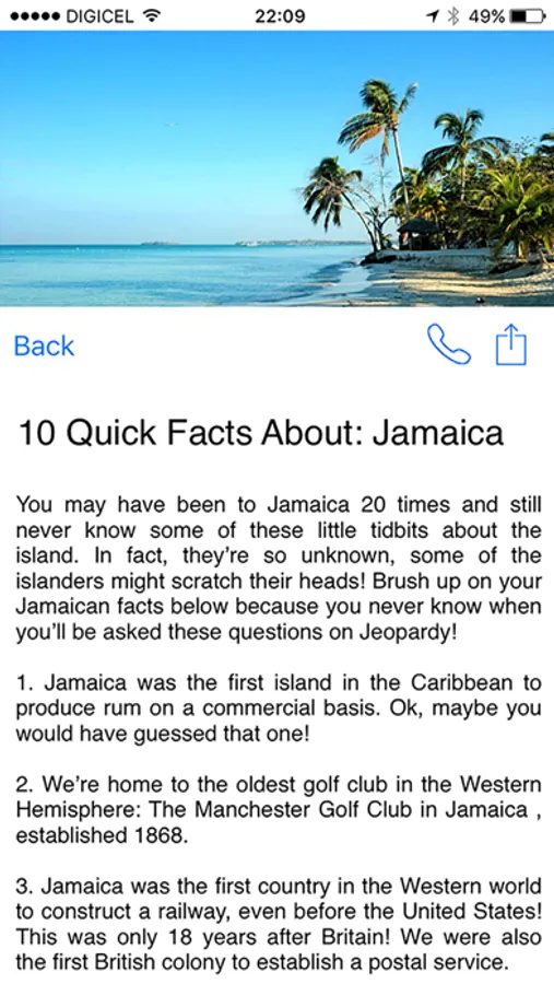 The user friendly design means you can access your personal Jamaica travel tips anytime, anywhere! Find exactly what you’re looking for when you search our ‘favorites’ or nearby locations using the interactive map. Have highlights you want to share? Share your Jamaican Experience with your friends and families using the social sharing tools.