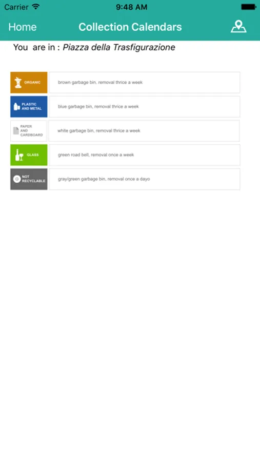 See the map of the work of AMA for Rome: waste collection calendar for each city street, sweeping paths, protected cleaning routes on major route arteries, collection centers for bulky waste, prefabricated toilets, containers for used batteries, expired drugs and vegetable oils. Also see where to dispose rubbish for proper recycling..