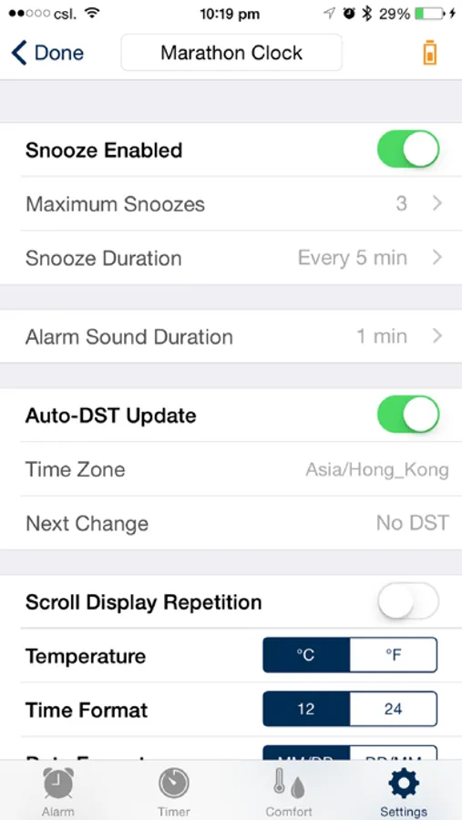 - Auto time synchronization with your mobile network through your mobile device with DST switching where applicable