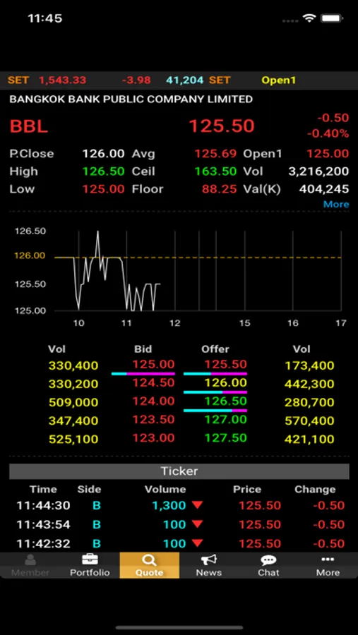 - แสดงข้อมูล พอร์ตโฟลิโอ หลักทรัพย์ที่ถือครอง พร้อมกำไร/ขาดทุน ต้นทุนเฉลี่ย มูลค่าตลาด และเงินหลักประกันคงเหลือ และปริมาณการซื้อขาย