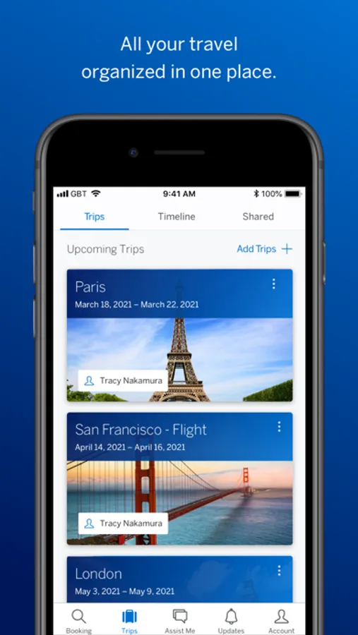 • Updated itineraries and timeline view allow for easy access to all of your travel.