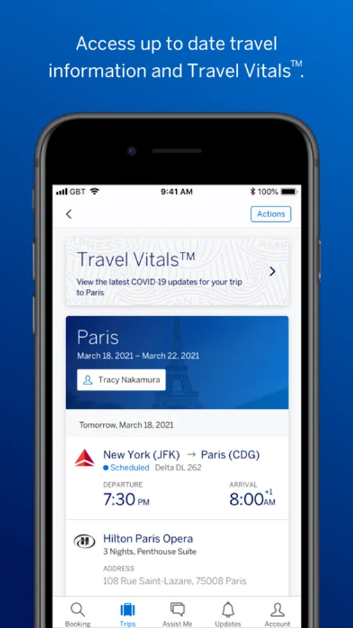 Whether you are a road warrior booking complex international trips with many connections, or simply trying to keep track of flight, hotel, car and rail details without resorting to paper itineraries that are hard to access when you need them – Amex GBT Mobile is your partner in all things travel.