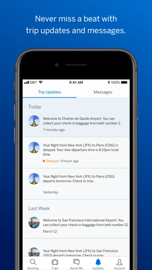 • Receive important travel updates and notifications in real time.