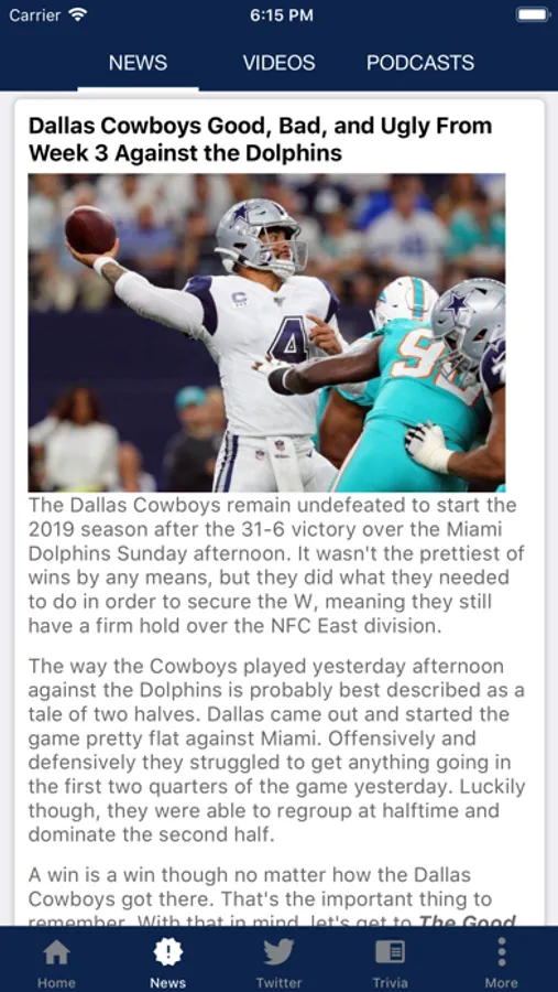 * A feed of the latest News, Video, and Podcasts covering the Dallas Cowboys
