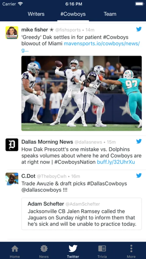 * Twitter updates from Dallas Cowboys writers, fans and the players