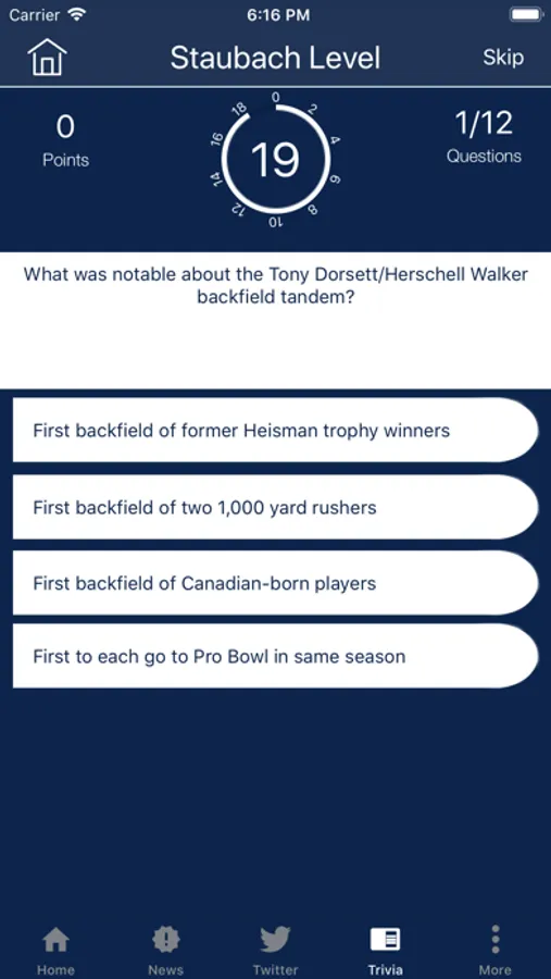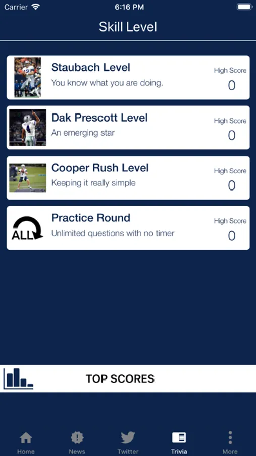 * Trivia challenge game of over 300 questions covering the entire Dallas Cowboys history