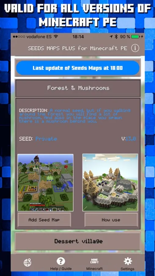 Download this fantastic app now and you will have all of the Minecraft PE seeds in the palm of your hand.