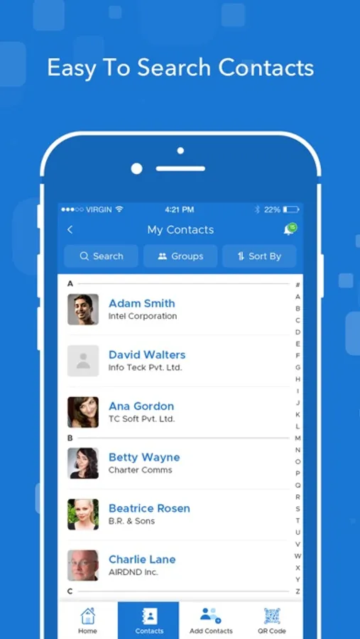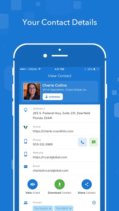 Contact Information (phone numbers, email, address) for your Contacts are automatically updated and kept current.