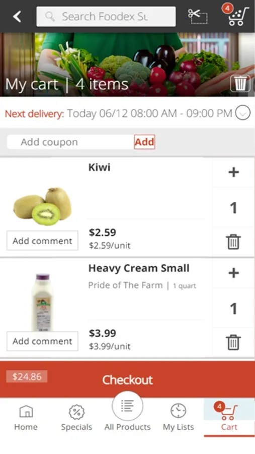 Using Foodex shopping app will let you search and order products from the store, quickly and easily.