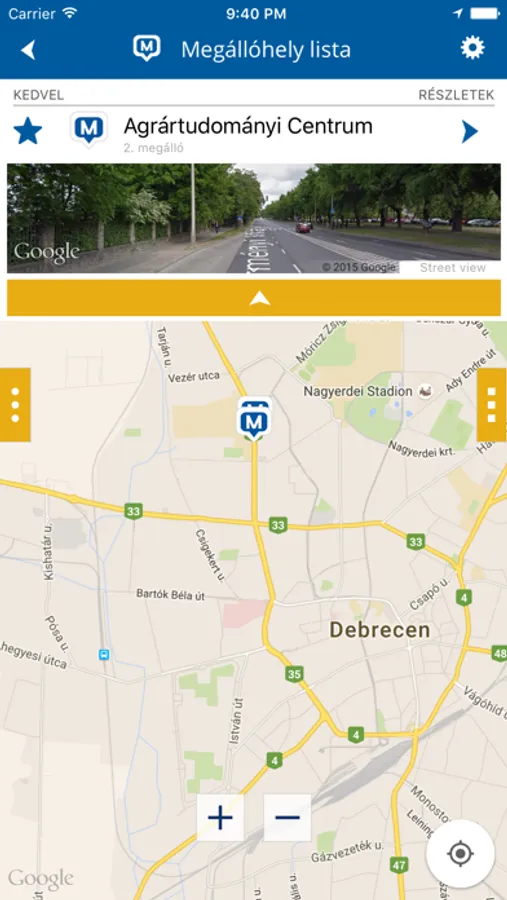 - aktuális pozíció alapú térképnézet, megállóhelyekkel