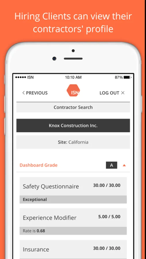 • Hiring Clients can search for contractors and view their company profile and scorecard