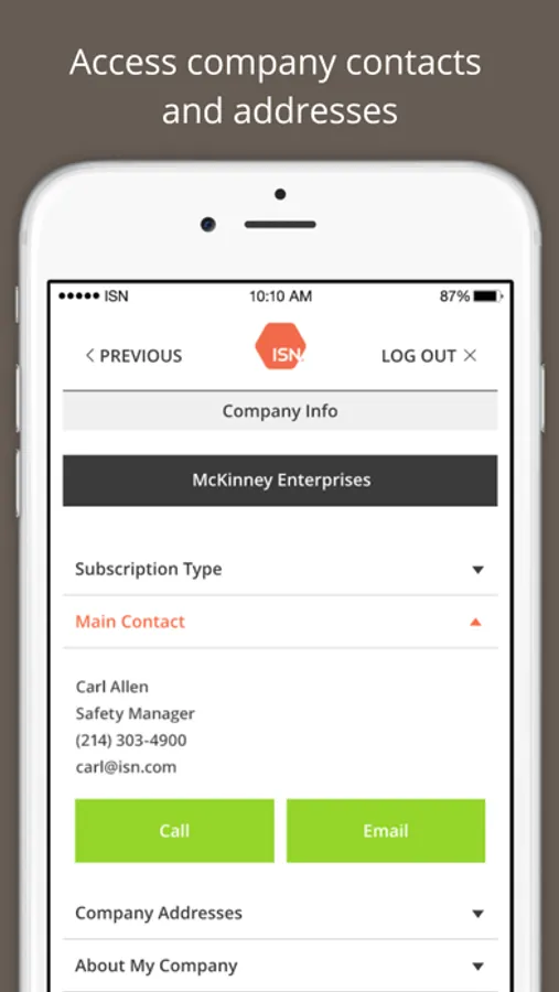 This mobile application maintains the same strict security measures of the desktop version of ISNetworld. This app is available for actively subscribed ISNetworld members.