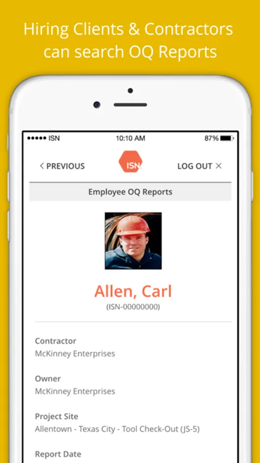 ISN’s mobile app provides customers access to its online contractor management platform, ISNetworld, via smartphone and tablets, anywhere an internet connection is available. Hiring Clients can confirm a contractor’s compliance, add evaluation reports and access OQ and TQ reports via their mobile device. Contractors can view their scorecard and requirements by Hiring Client, provide their employee ID and barcode for scanning as well as read important bulletins and messages from their clients within the app.