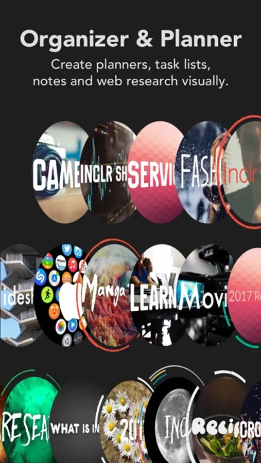 Inclrs are graphical information clusters for visually storing data. Inclrs are themed and customised to create emotional impressions for effective memory retrieval. Rotating nodes are like sub-folders which contain content. By using touch to spin the nodes, you also train your muscle memory to increase data retention and improves focus.