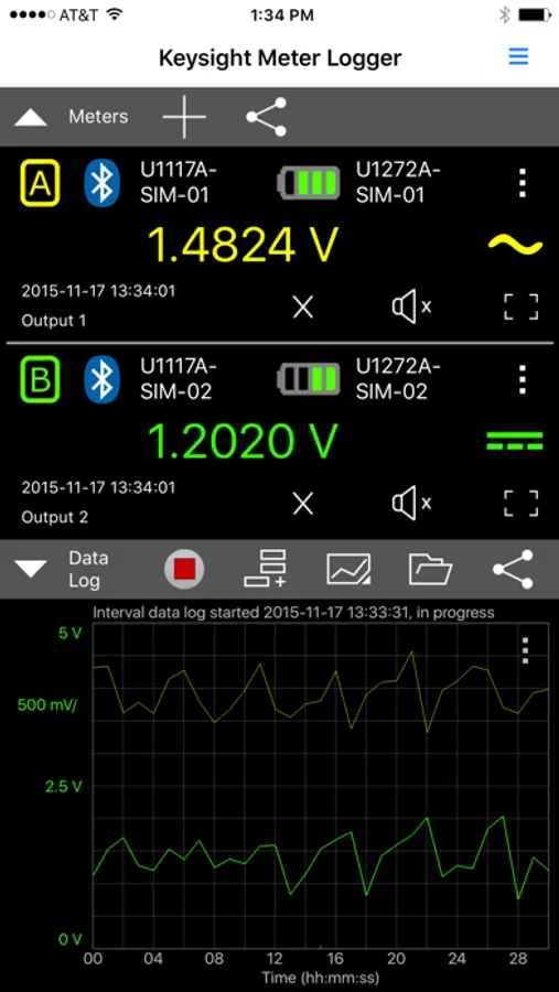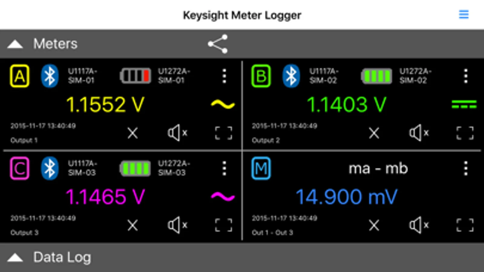 Keysight Meter Logger for iPhone and iPad improves your productivity and safety by allowing you to stream measurements in real time from up to 3 Keysight handheld digital multimeters and clamp meters wirelessly: