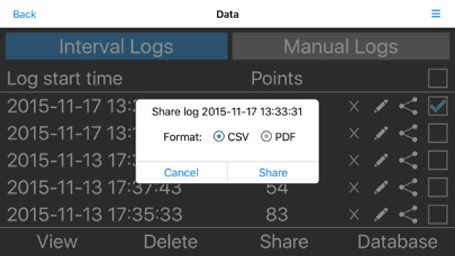 - Share recorded data in .csv and .pdf format via multiple platforms (Email, Dropbox, etc.)