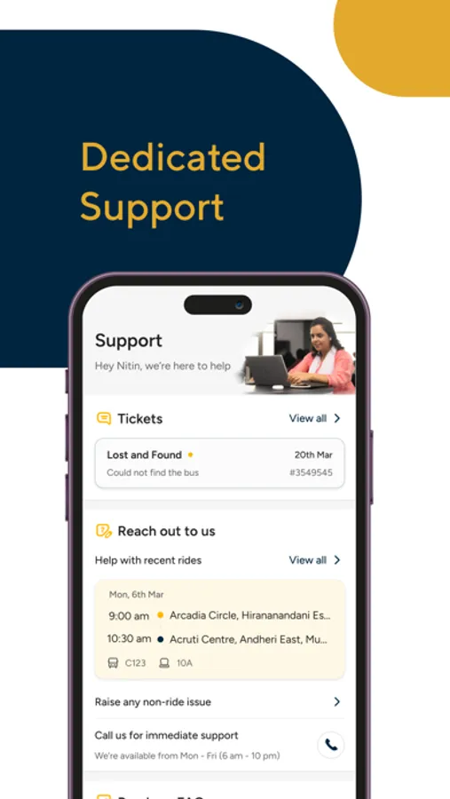 In this commute app, users can book and customize their office rides on premium buses, view live tracking, and reschedule bookings easily. Includes live bus monitoring, safety measures, and flexible subscription options.