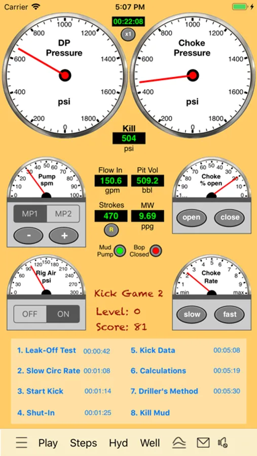 This is a basic well control simulator like a kick game with 4 levels and score calculations for training in practices of the Driller’s method and Wait and Weight Method.