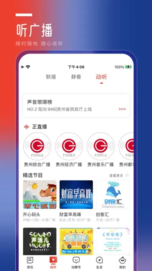 【视听】整合电视,广播,联播精彩内容,直播+点播、您想听的声音和想看的节目都在这里