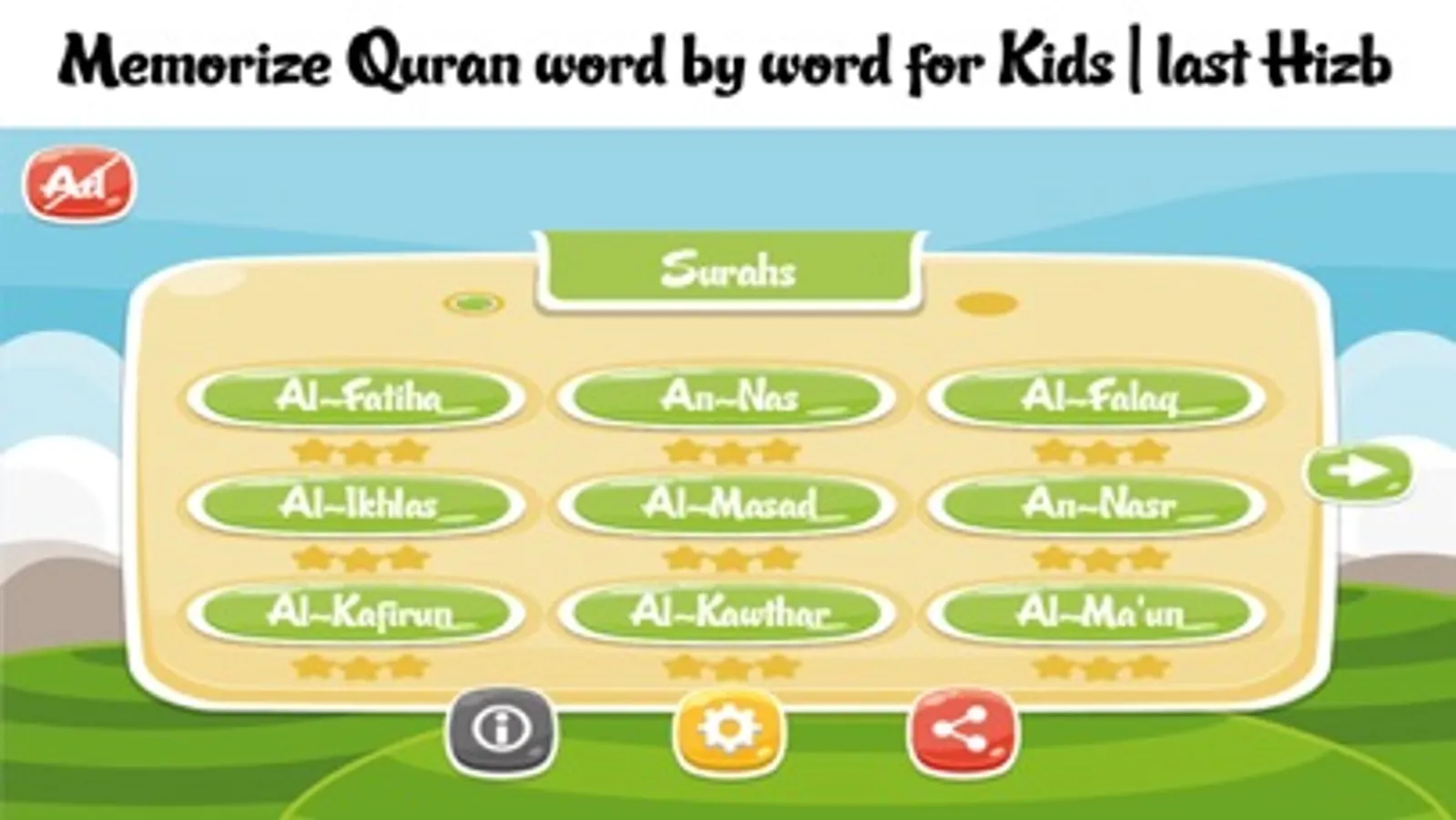 Memorize Quran word by word for Kids | last Hizb is an application developed by Osratouna.com, it helps muslim children and even adults to easily memorize the last Hizb of the Quran. You can choose between two modes (verse by verse or word by word).