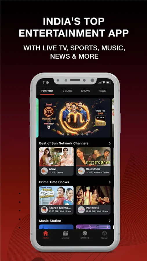 Watch Parineeti, MasterChef India, Kundali Bhagya, Taarak Mehta Ka Ooltah Chashmah, The Kapil Sharma Show, Naagin 6, Udaariyan & more. Also watch TV Shows, Movies, Sports: Cricket, Football, Tennis, News in HD for free. Unlike DTH you can watch it anytime, anywhere. Enjoy Live TV across 950+ TV channels including 200+ HD channels in 15+ languages. Watch Catch-up on the latest shows & enjoy the uninterrupted streaming experience