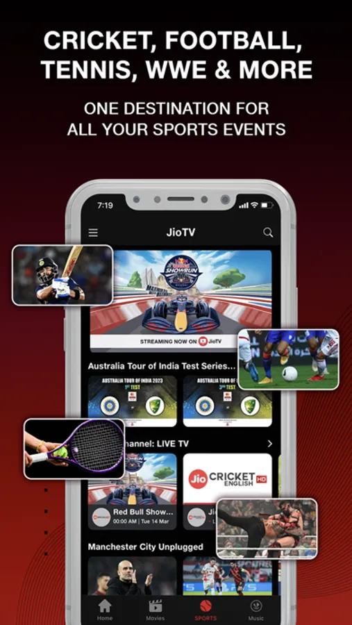 We offer a range of LIVE Sports including Cricket, Football, Hockey, F1, Tennis, and Basketball with events like UEFA Champions League, FA Cup, Serie A, Europa League, EFL Carabao Cup Final, International Friendlies 2021, WWE SmackDown, WWE Raw, UFC Fights, MOTO GP, NBA, PGA Tour, AFC Champions League, Euro Qualifiers and much more with our Live TV app. You can also watch exclusive sports on Jio Sports channels.