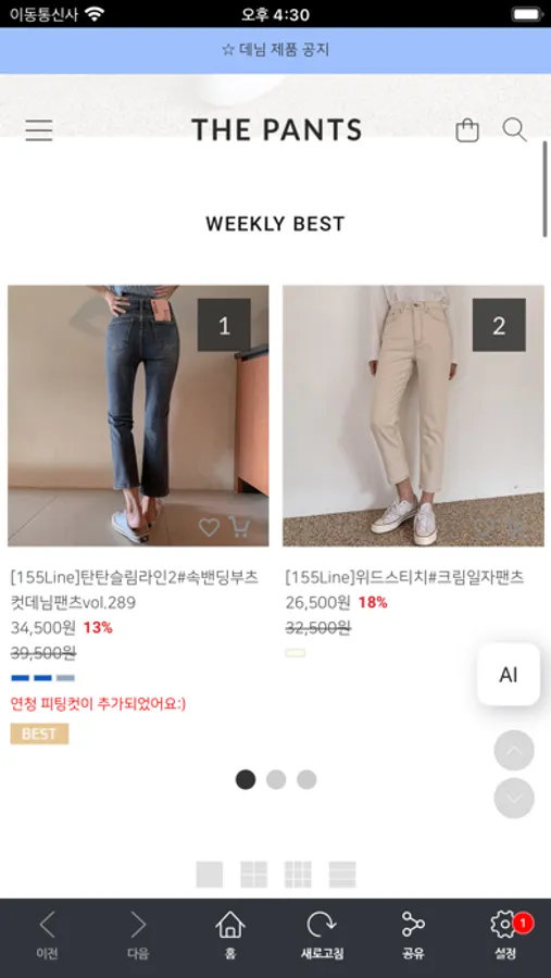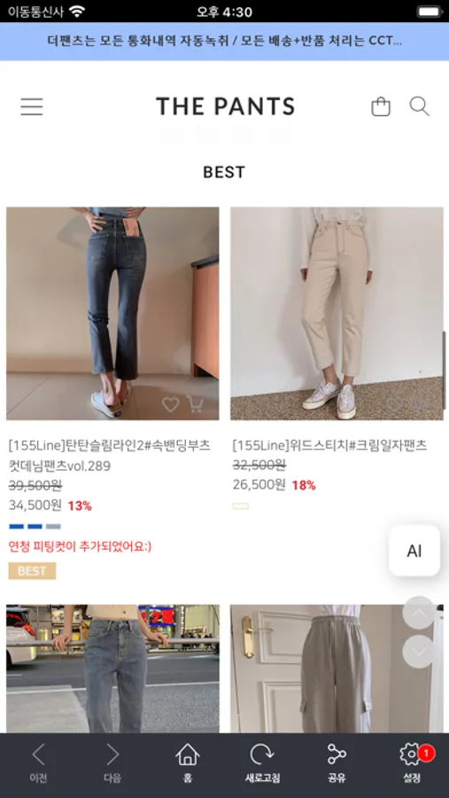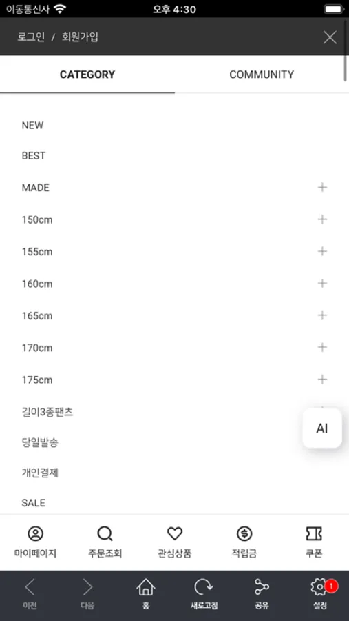 본 APP은 웹사이트 쇼핑몰과 100% 연동되어 있어