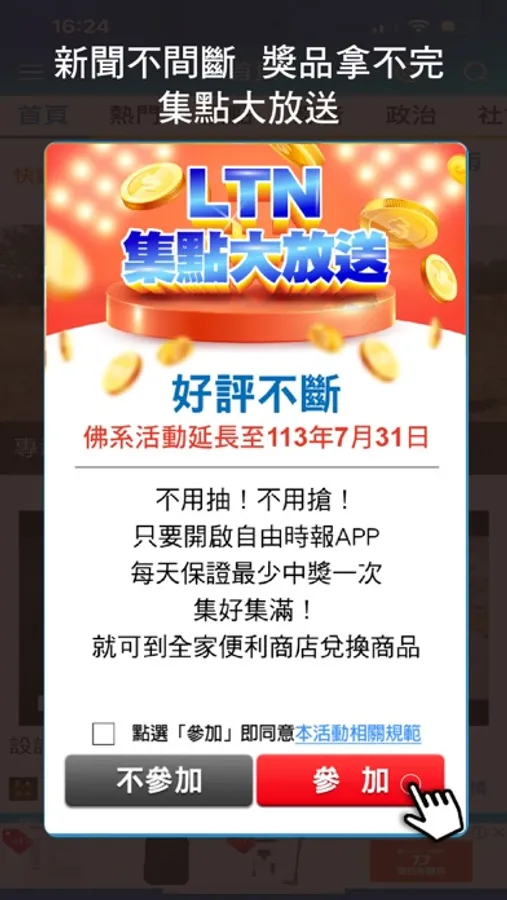 - 重大新聞通知功能讓讀者能接收來自自由時報即時新聞通知