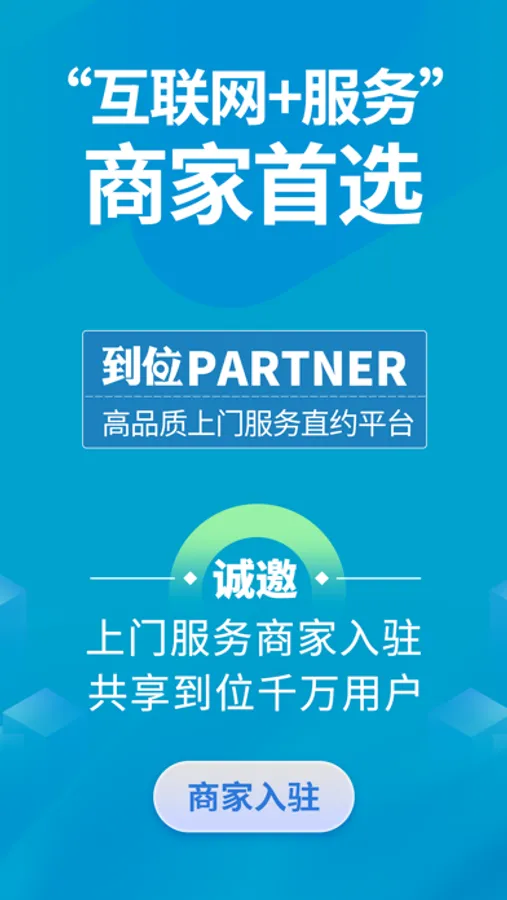 到位是一个开放的、高品质的上门服务直约平台,为广大服务商提供全方位的技术及营销支持,帮助商家走进千家万户,轻松获得更多订单。