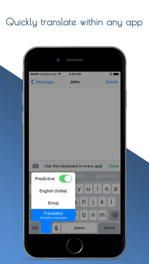 Translator keyboard is the easiest and most convenient translator you will find. You no longer have to switch to and from a translator app, translations are built into your keyboard!