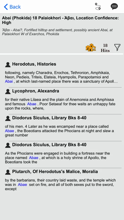 ToposText is a new interface that links readers and travelers to Europe’s most ancient literary culture and to the Greek landscape that inspired it. TT presents 5000 places relevant to the ancient Greek world -- ancient cities and shrines, medieval castles and towers, modern museums and excavation sites -- primarily in Greece but including major places from Spain to the Caucasus. It links those places to the ancient authors who wrote about them in Greek or Latin. A large classical library married to an up-to-date gazetteer, freely available as a mobile application or this web site.