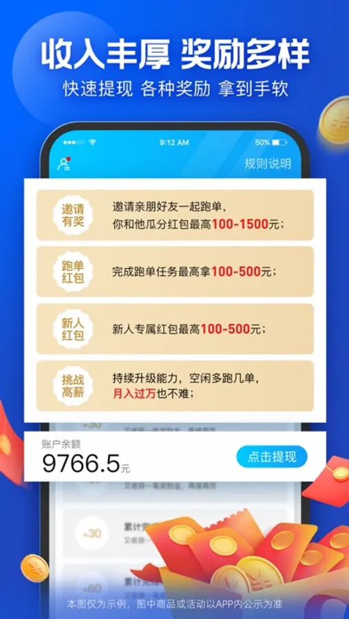 新人奖励:新人专属优质单特权单多顺路距离近,专属红包新人奖励惊喜多;
