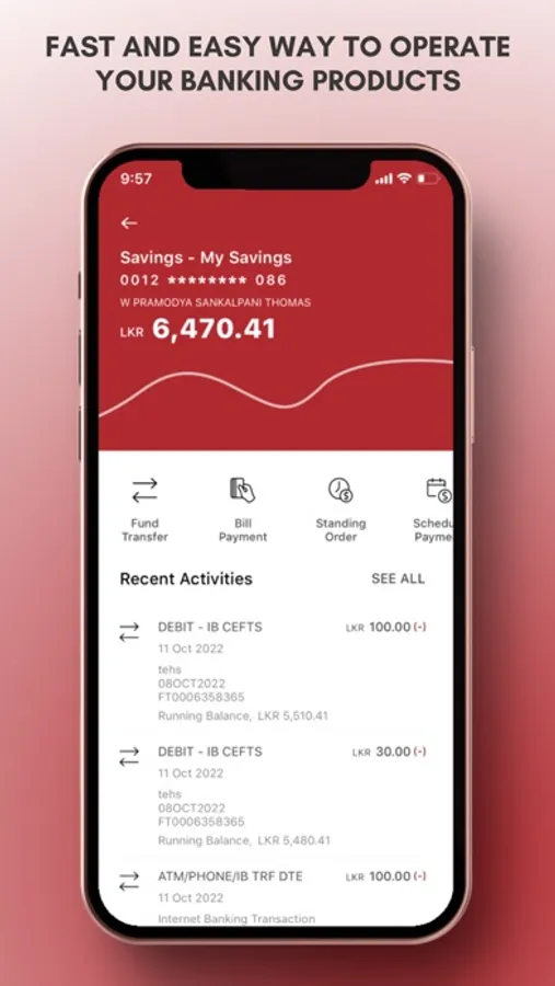 Simply download or update the App and use the existing User ID and Password already issued to you for Seylan Internet Banking to do your financial transactions.