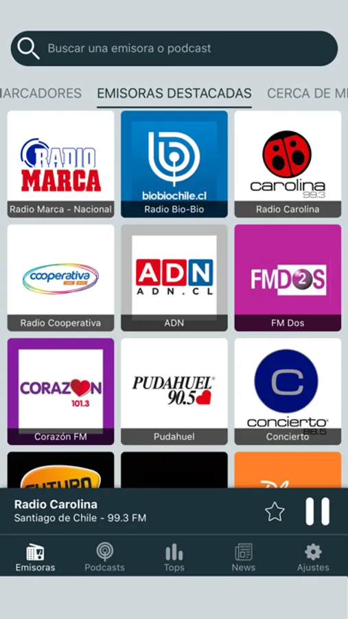 Listen to the best radio stations of Chile in our application. You can choose from sports, news, music and other radio stations.
