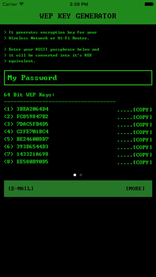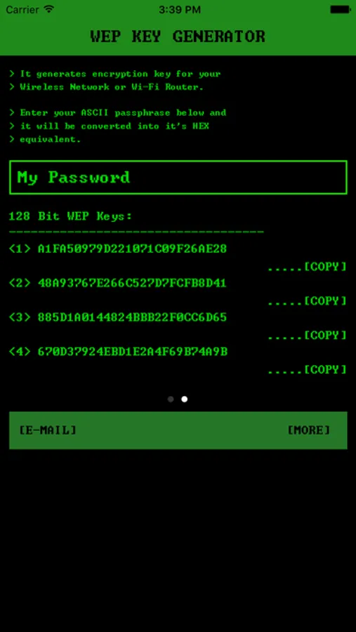 Wifi Password Generator Pro is an offline wep key generator for your wireless router. It helps you to generate 26 HEX digits WEP key that can be used to secure Wi-Fi network. You can now generate keys in the classic command prompt interface.