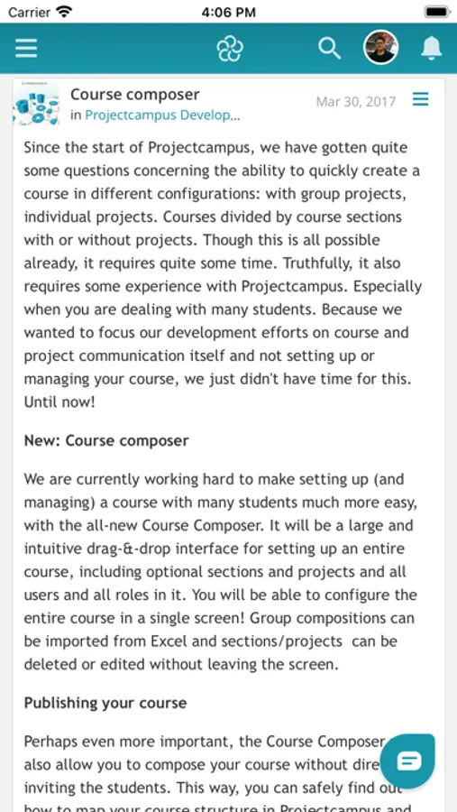 Teachers have one place to follow, retrieve and discuss progress of students. Students have an ad-free, clean and simple place for their projects, research and course discussions. Your Facebook, Whatsapp and Snapchat is for your social life. Projectcampus is made to share and discuss projects and course with fellow students and teachers.