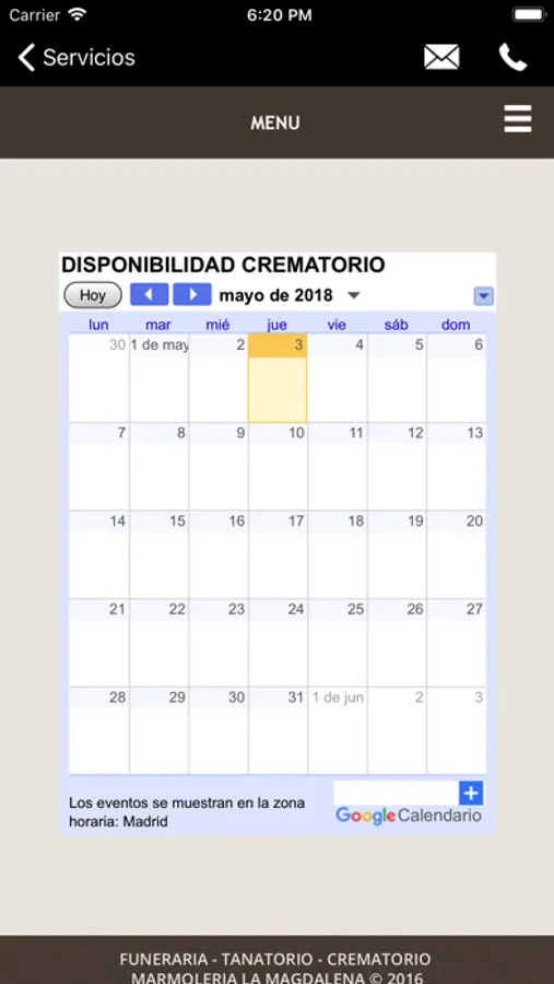 Aplicación móvil de la Funeraria Y Marmolería La Magdalena.
