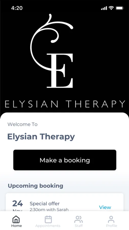 The Elysian Therapy app makes booking your appointments and managing your loyalty points even easier. You're just a few taps away from feeling good and looking great!