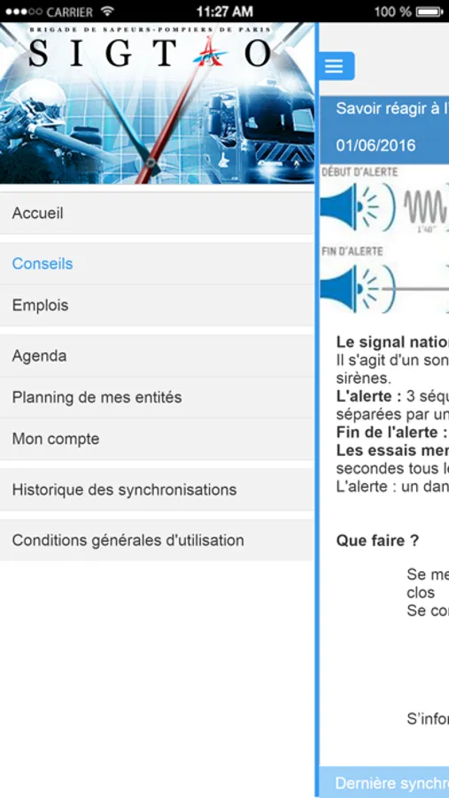 Application SIGTAO : Application permettant d’accéder aux offres d’emploi proposées par la Brigade de sapeurs-pompiers de Paris, de prendre connaissance de diverses informations sur la protection des populations ou des conduites à tenir en cas de dangers particuliers. L’application permet également à tout pompier de Paris de visualiser son emploi du temps opérationnel mensuel et journalier et de gérer des désidératas de service.
