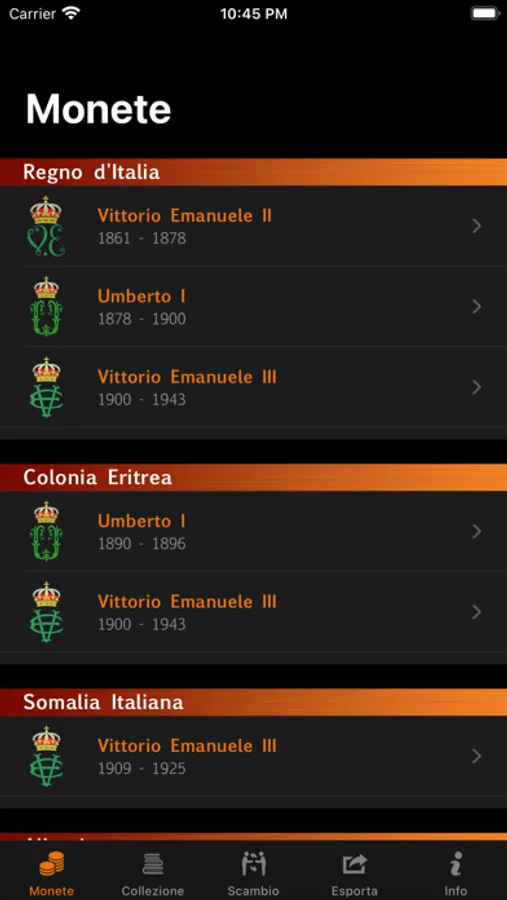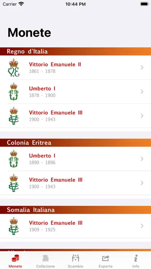 Un archivio completo ti guiderà alla riscoperta delle lire in moneta del Regno d'Italia e delle sue Colonie (Eritrea, Somalia, Albania) tramite: